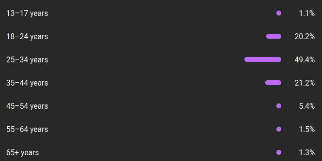 This work is seasonal. Yes, I work online but the style of videos and streams I do caters to a specific demographic. In the image below I show my YouTube Demographics. This is mirrored almost exactly with my average Twitch demographics. Since the majority of my audience is 25-44 years old that is the age where someone who is watching my work is likely busy with family or work. In the summer, people get time off and go do things. Alternatively their free time is lessened because their kids are not in school. Less free time means I get less viewership. I used to always say that "I'll survive summer and be okay after PAX" because the event landed in the end of August/Early September. Around the time kids were getting ready to go back to school and my stats would improve. I no longer have that so summer just feels endless. This means I have to focus on other things to get me through the slow season.