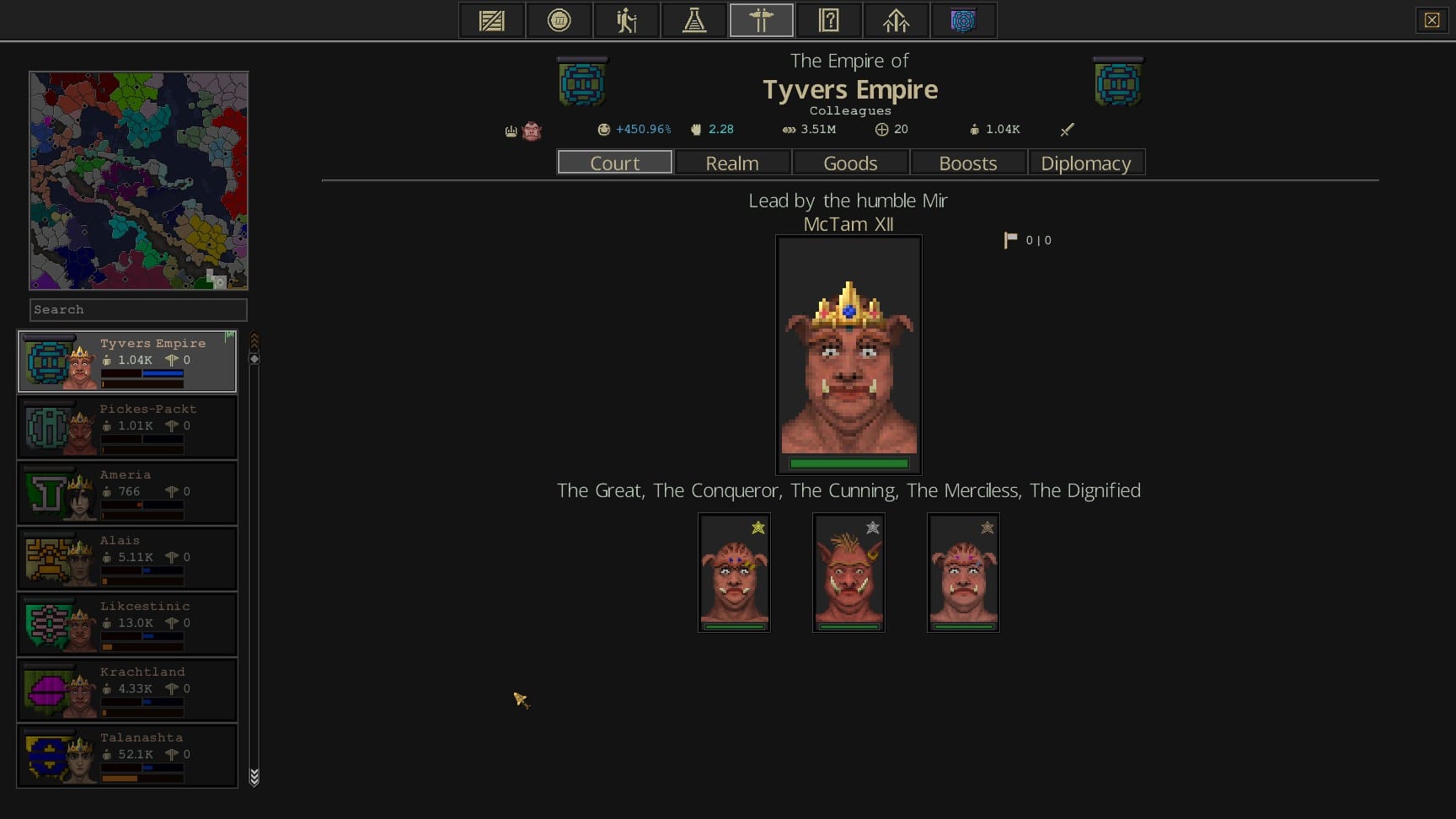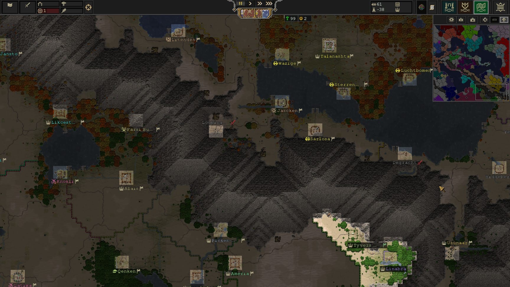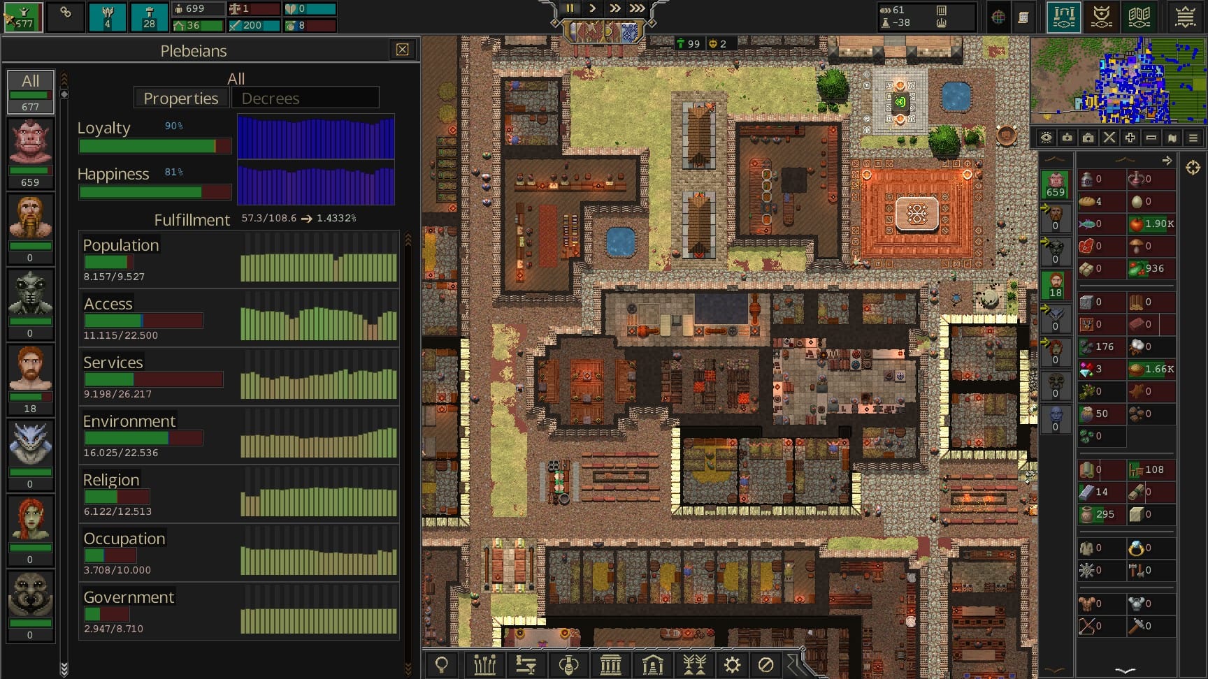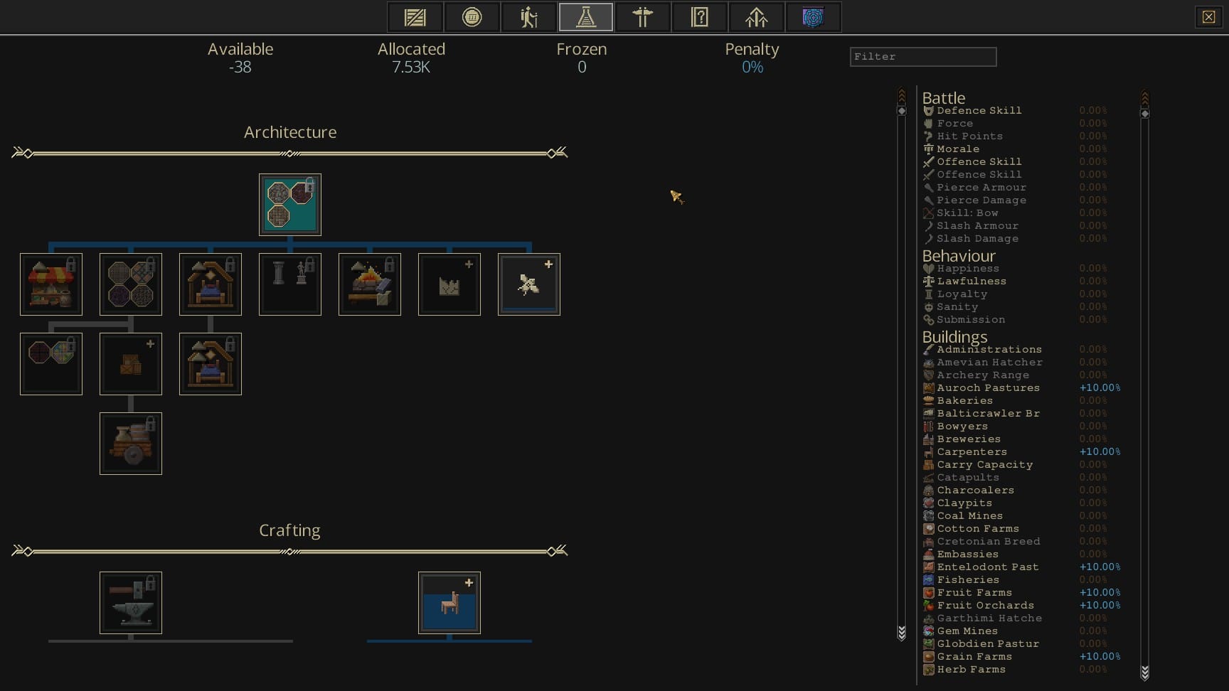 Since its an early access title the game has had a number of quite large updates since I last played it. Back then I even recorded an interview with the developer Jake. Its worth taking a look at still just to see how much the game has changed. The visual details are largely the same but the UI has been cleaned up a lot. It still feels the same in a lot of ways but its a lot more streamlined and less tedious to work with. The first demo of the game I played was on itch.io and the first time I played it took me 7 hours to even find the tech tree not realizing I had to click the knowledge icon. While a new player might still struggle off the bat finding those hidden UI elements seems a lot easier from my perspective. The over world map now has a fog of war. Only showing areas that you have active relations with. While this is probably for the best long term I do miss the ability to see dozens if not hundreds of little armies and trade wagons moving around the map. The pace of the game seems a bit slow still but the progression makes more sense. If you hit a major hold up in population its often best to just look at the buildings that are available and work towards making them. Its often a small niche need that is the difference between 500 population and 1200.