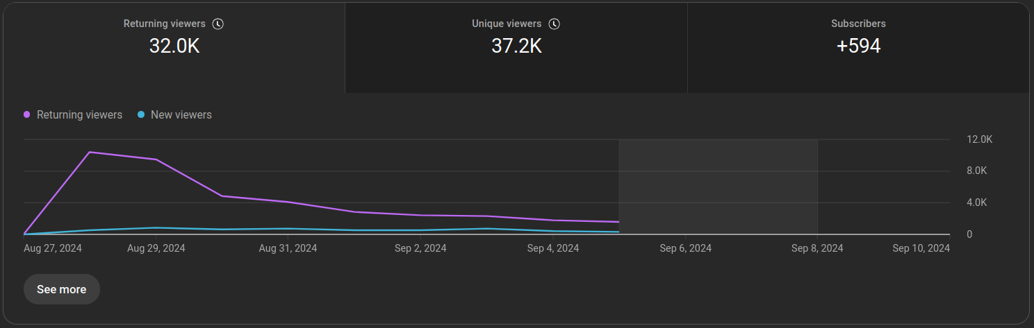 Simply put, I’ve learned that mechanics are key in my videos. Gimmicks and mechanical explanations seem to perform better than just telling a story. Godly Tombs also fared much better with new viewer interest and retention. Gore Tusk has had a few bumps from the algorithm, but they don’t last very long, leading to a significantly faster drop-off compared to Godly Tombs.