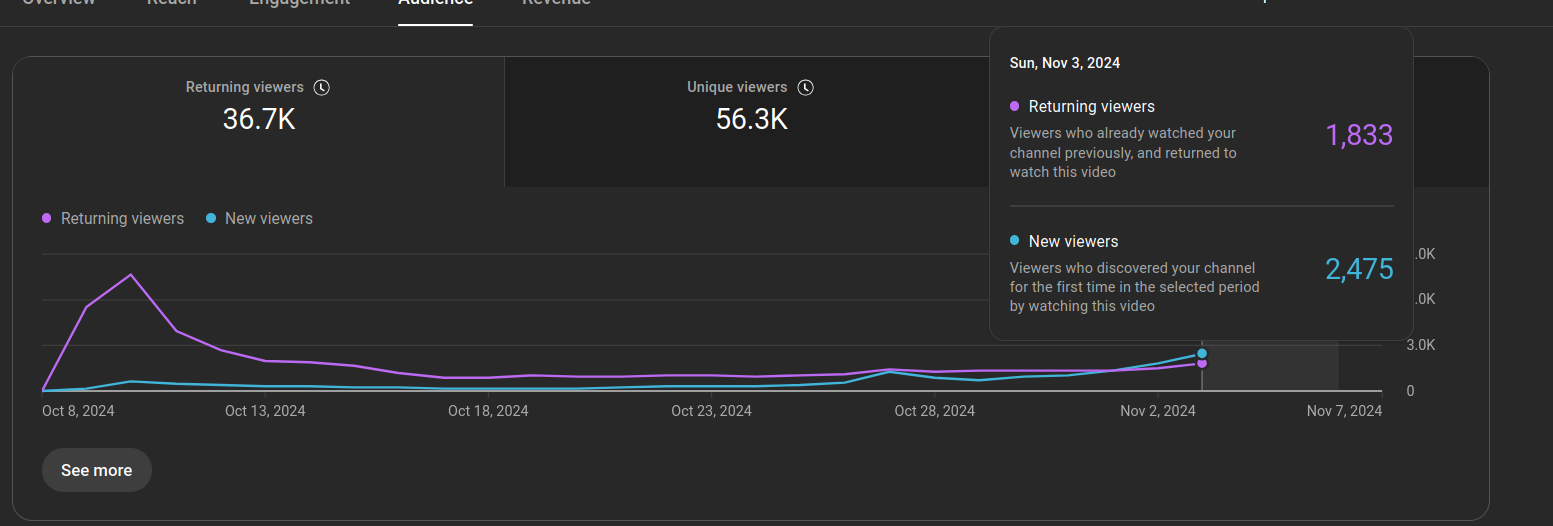 The main thing you want to see in a video is growth. New viewers are the optimal outcome of a video release. This means a higher likelihood of new subscriber conversions. It also means YouTube has found new audiences to push my content toward. This is a net positive for me and the video.