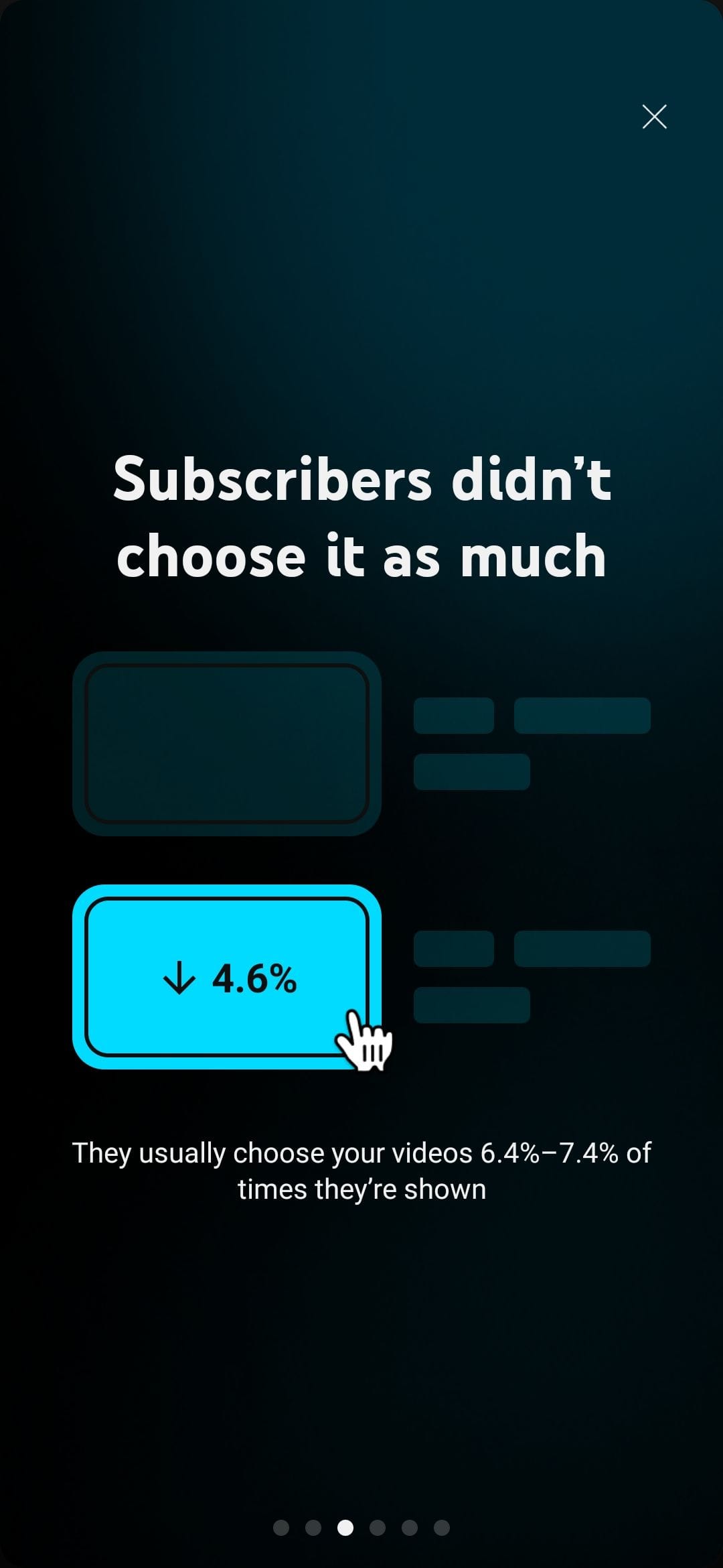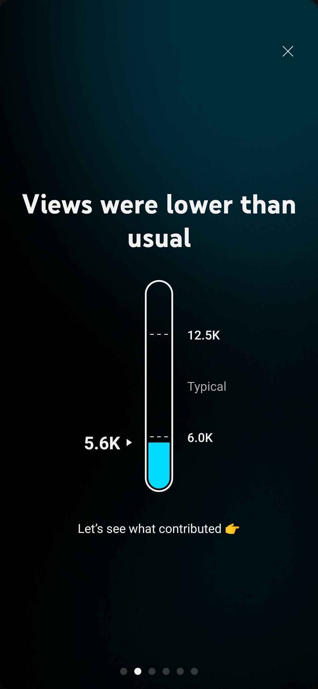 It takes the content of the comment and then prompts it. Pointless waste of energy and UI design. The final straw for me that has undoubtedly influenced this blog post was the mobile app. For awhile now the YouTube studio app has had a somewhat useless feature that shows weekly performance reviews. Sometimes it shows off some neat stats that I don't often look at but most of the time it is just the number of videos uploaded, how many likes you got and other surface level statistics. You can't make them go away unless you flip through them so I have developed a habit of opening and clicking through them quickly to make them go away. This time was different. Instead of the weekly performance review it said "Outperforming first 24 hours! Find out why" Grumbling I thumbed into it to see what YouTube had for me this time.