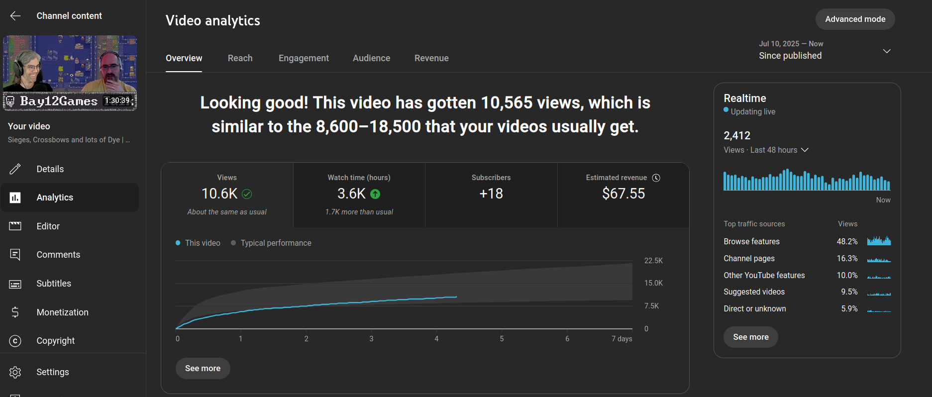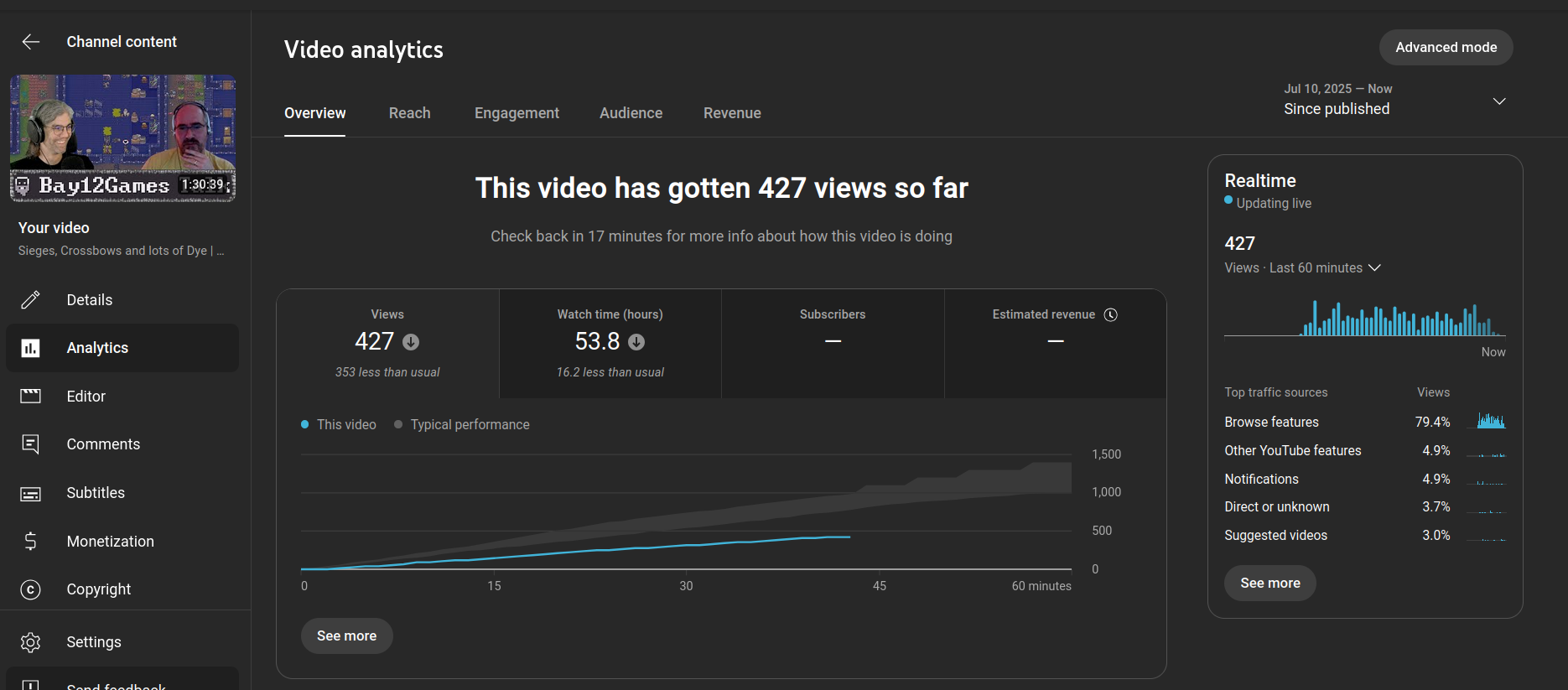 That is why I continue doing these. The with Bay12games team members are the least flashy yet most important work I do. While I might feel this way YouTube feels otherwise. This next part of this post is going to talk a little bit about how YouTube gaslights you into chasing trends. I don't want to seem like I am begging for sympathy or anything. I am extremely lucky and successful in what I do on these platforms. I also like to spotlight how the platforms make me feel positive and Negative.