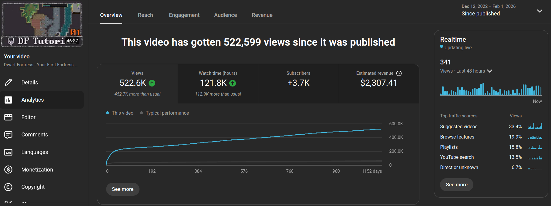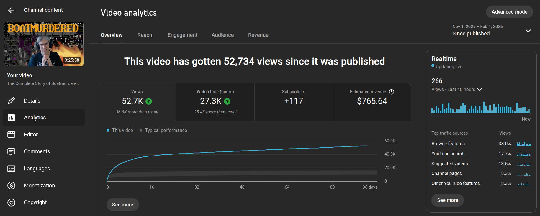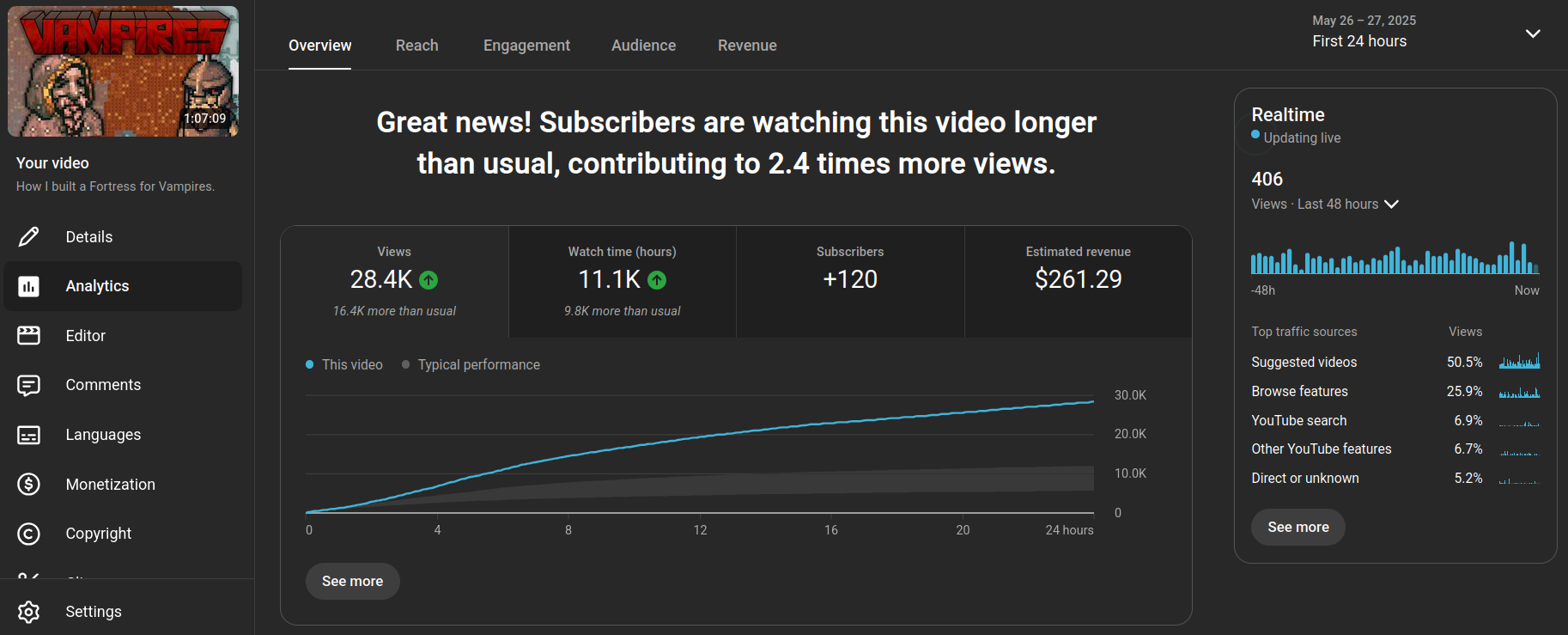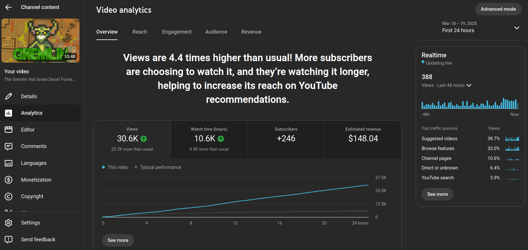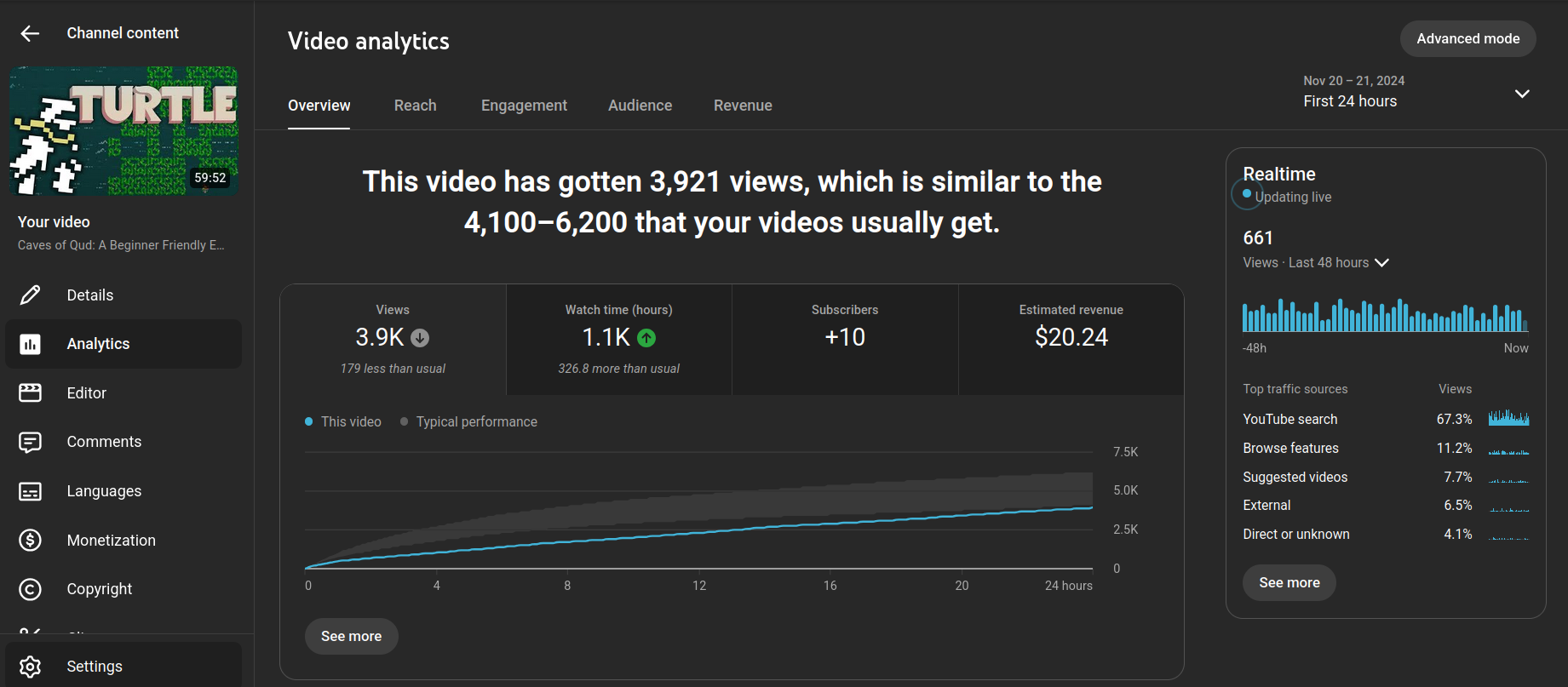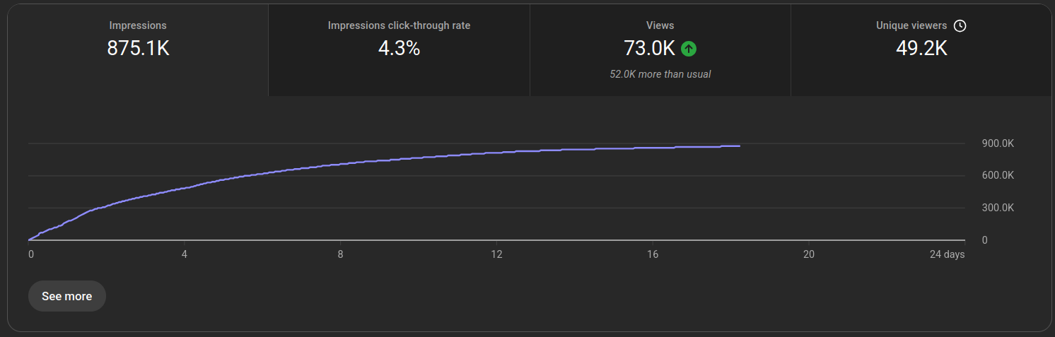 Initially this video did quite well, with the regular viewers. It got a decent amount of momentum out of the gate, and even performed better than about half of my previous major uploads.
