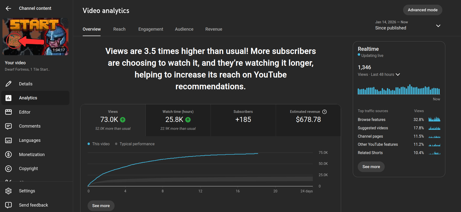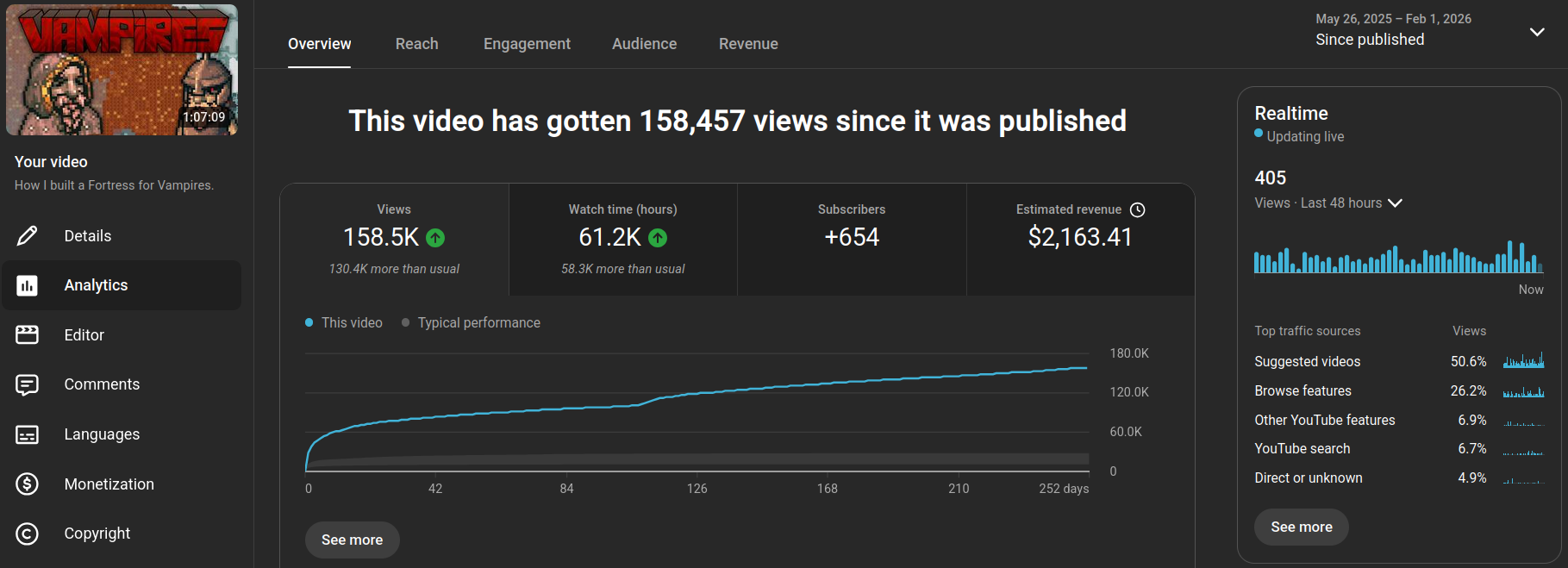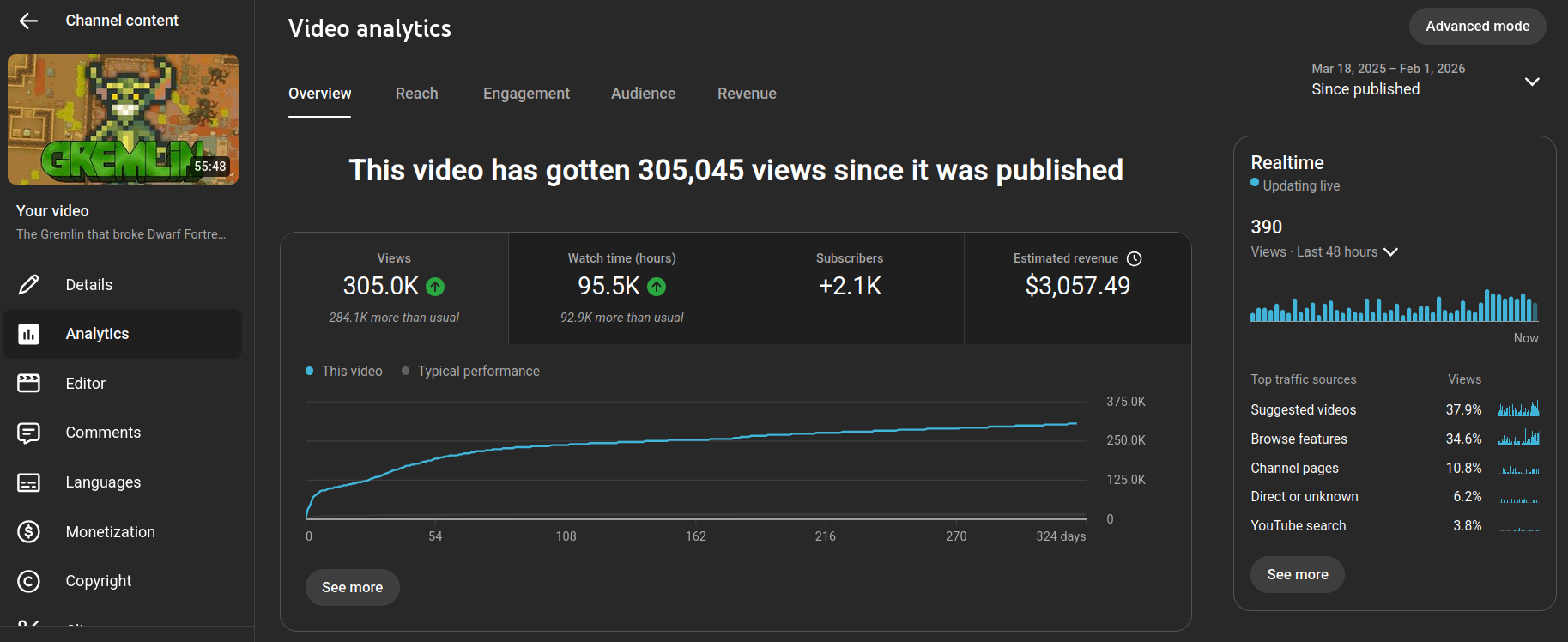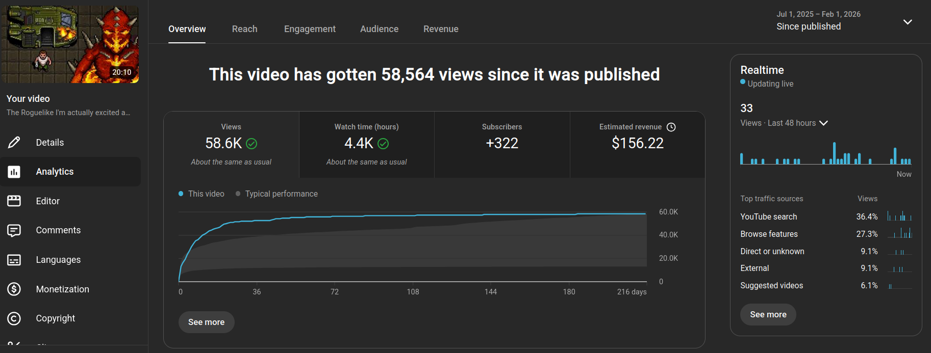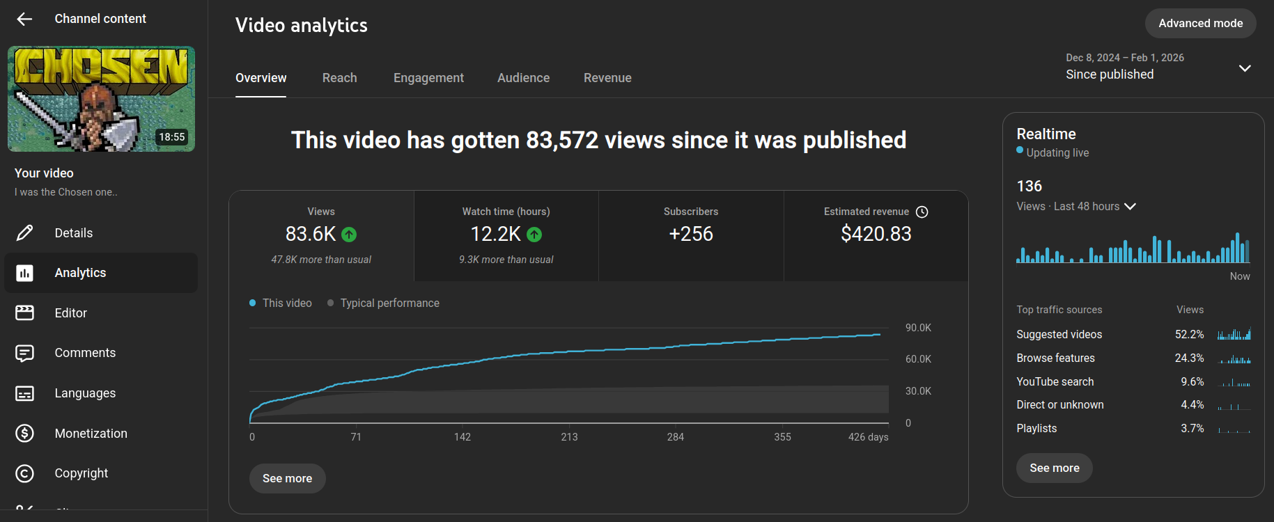 Initially this video did quite well, with the regular viewers. It got a decent amount of momentum out of the gate, and even performed better than about half of my previous major uploads.