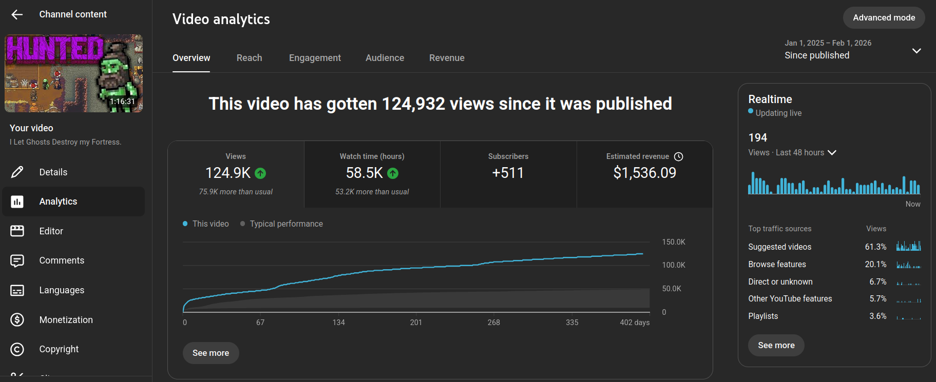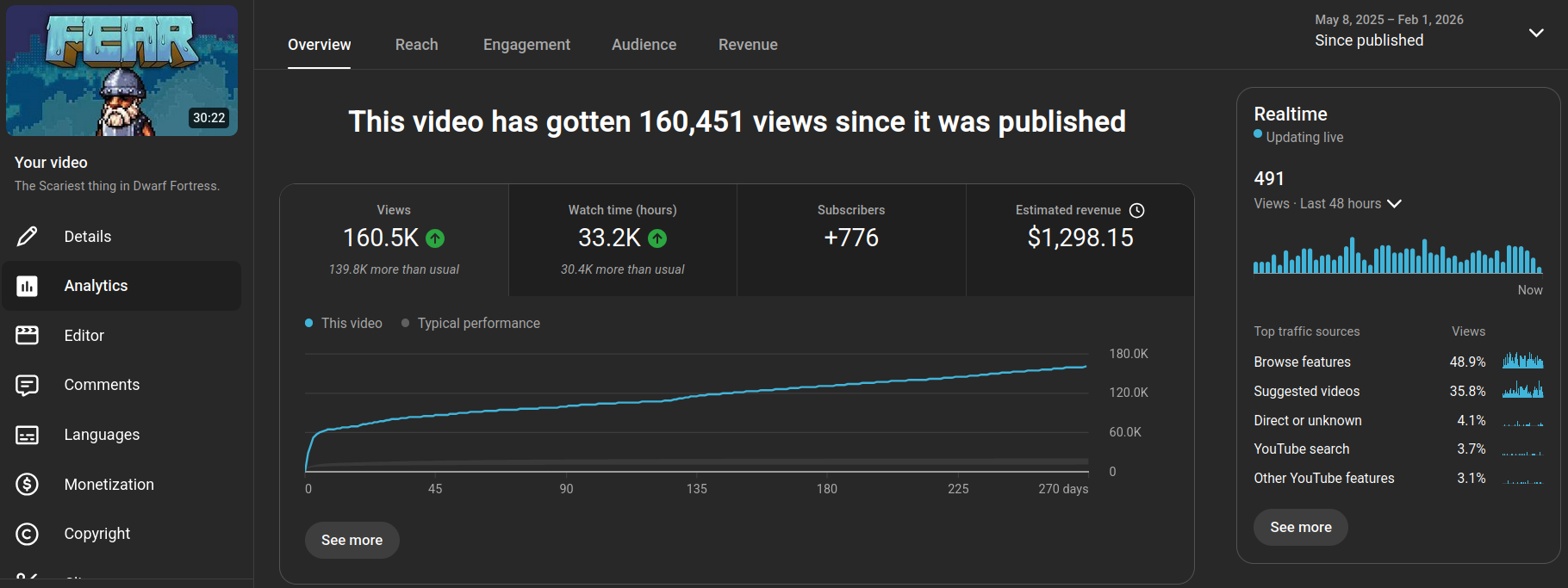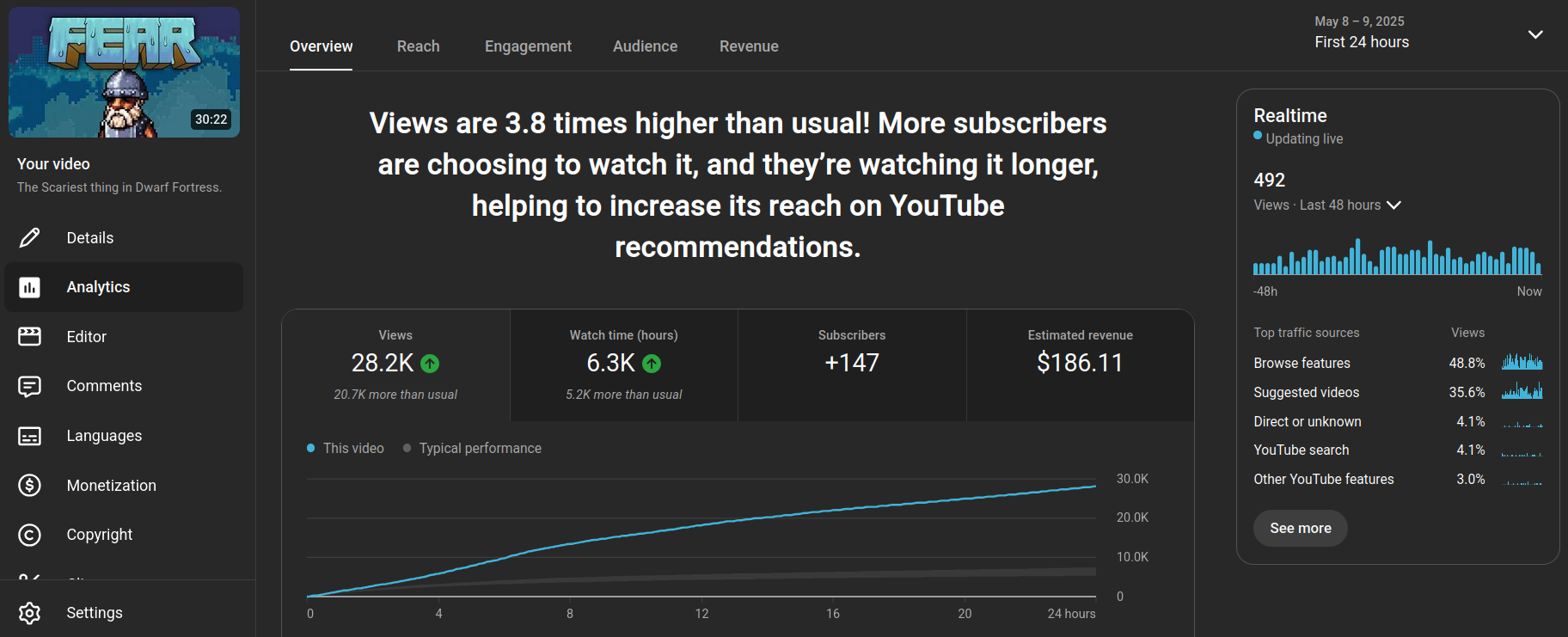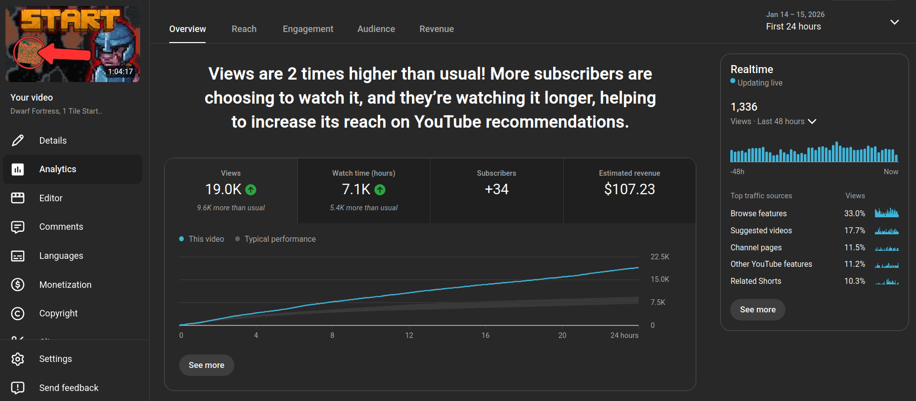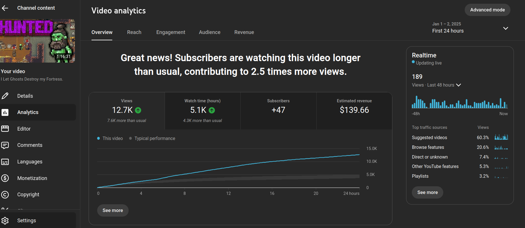 Initially this video did quite well, with the regular viewers. It got a decent amount of momentum out of the gate, and even performed better than about half of my previous major uploads.